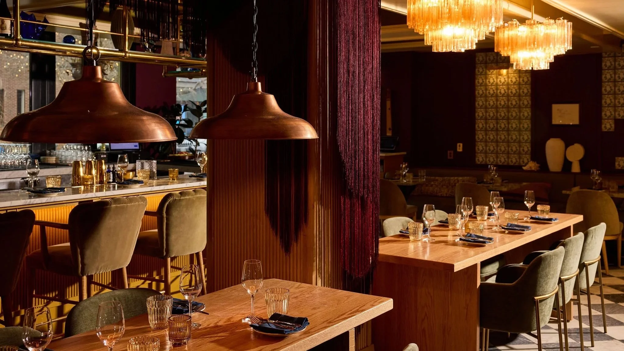 The result is a bar-forward environment where the layout itself drives a more social and flexible experience, blurring the line between restaurant and wine bar.